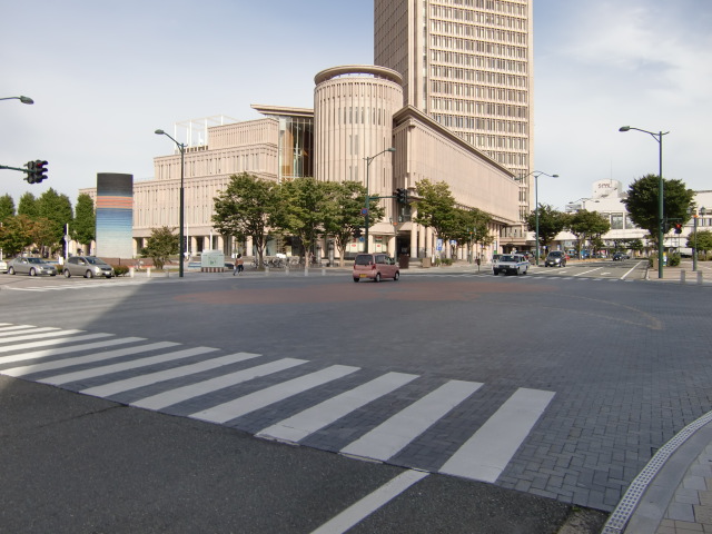 場所: 山形駅西口交差点 (角にホテルルートインがある交差点)